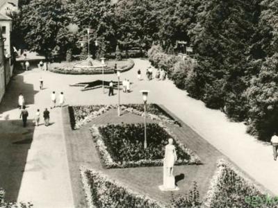 A tér bal oldali házsora ma már nem látható, helyette új épületeket húztak fel. Záhorzik Nándor szobász Álló nő szobra se áll már a téren.